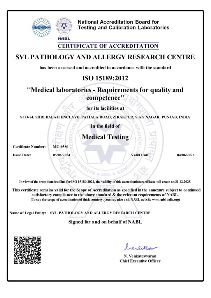 SVL Pathology is a trusted diagnostic laboratory based in Zirakpur, committed to delivering accurate, timely, and affordable pathology services. Built on the values of precision, transparency, and patient care, we support doctors and patients with reliable diagnostic insights that aid effective treatment decisions.